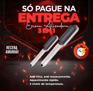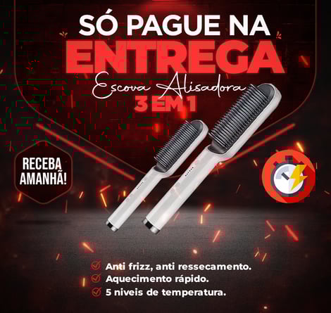 Apresentamos a escova alisadora 3 em 1! Ela é a solução para você alisar e escovar seu cabelo em apenas 15 minutinhos sem sair de casa! E pague só na ENTREGA!